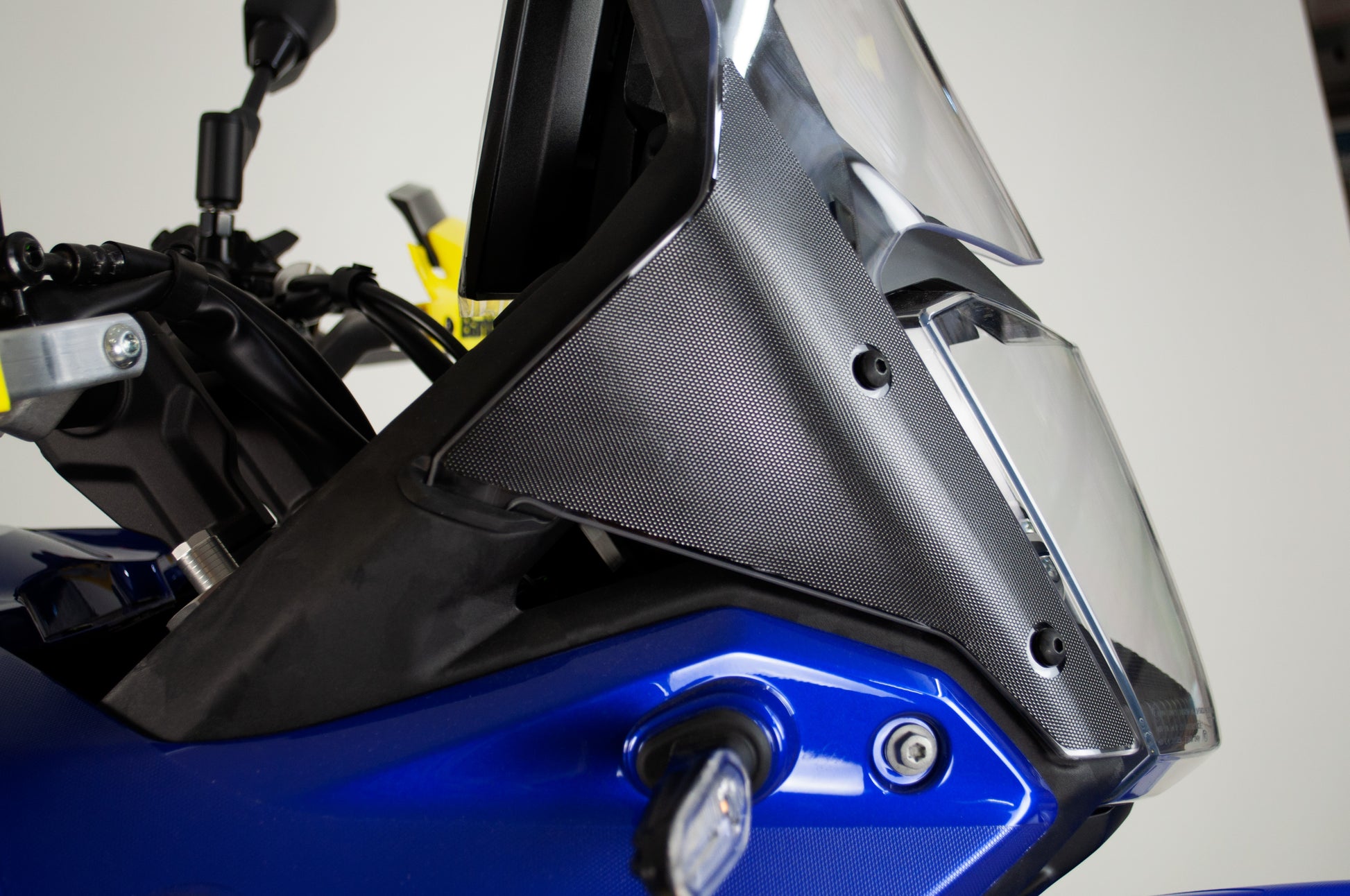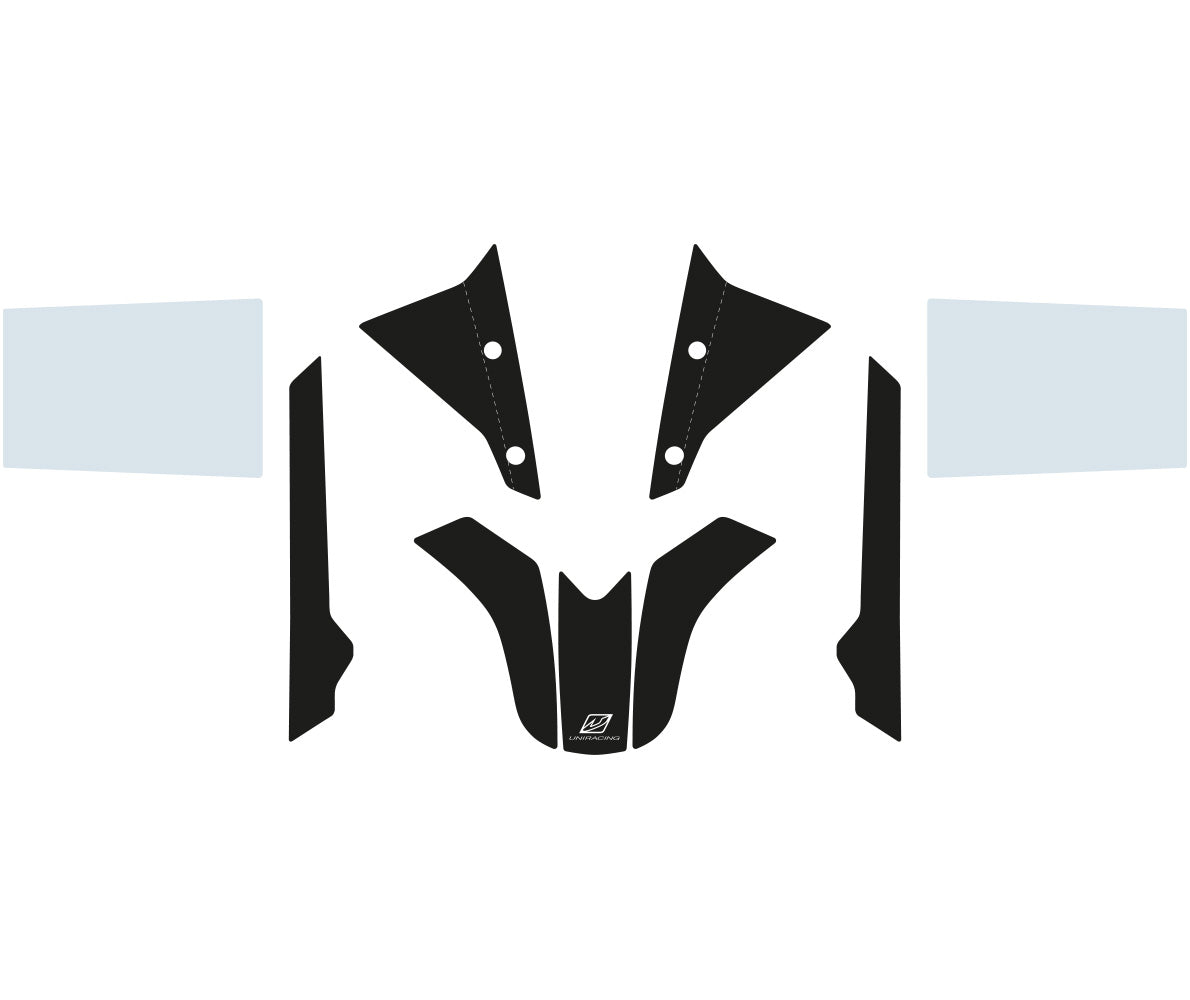 El material incorpora una textura técnica antideslizante, discreta y resistente, que refuerza las zonas clave del frontal manteniendo la estética original de la Ténéré 700.