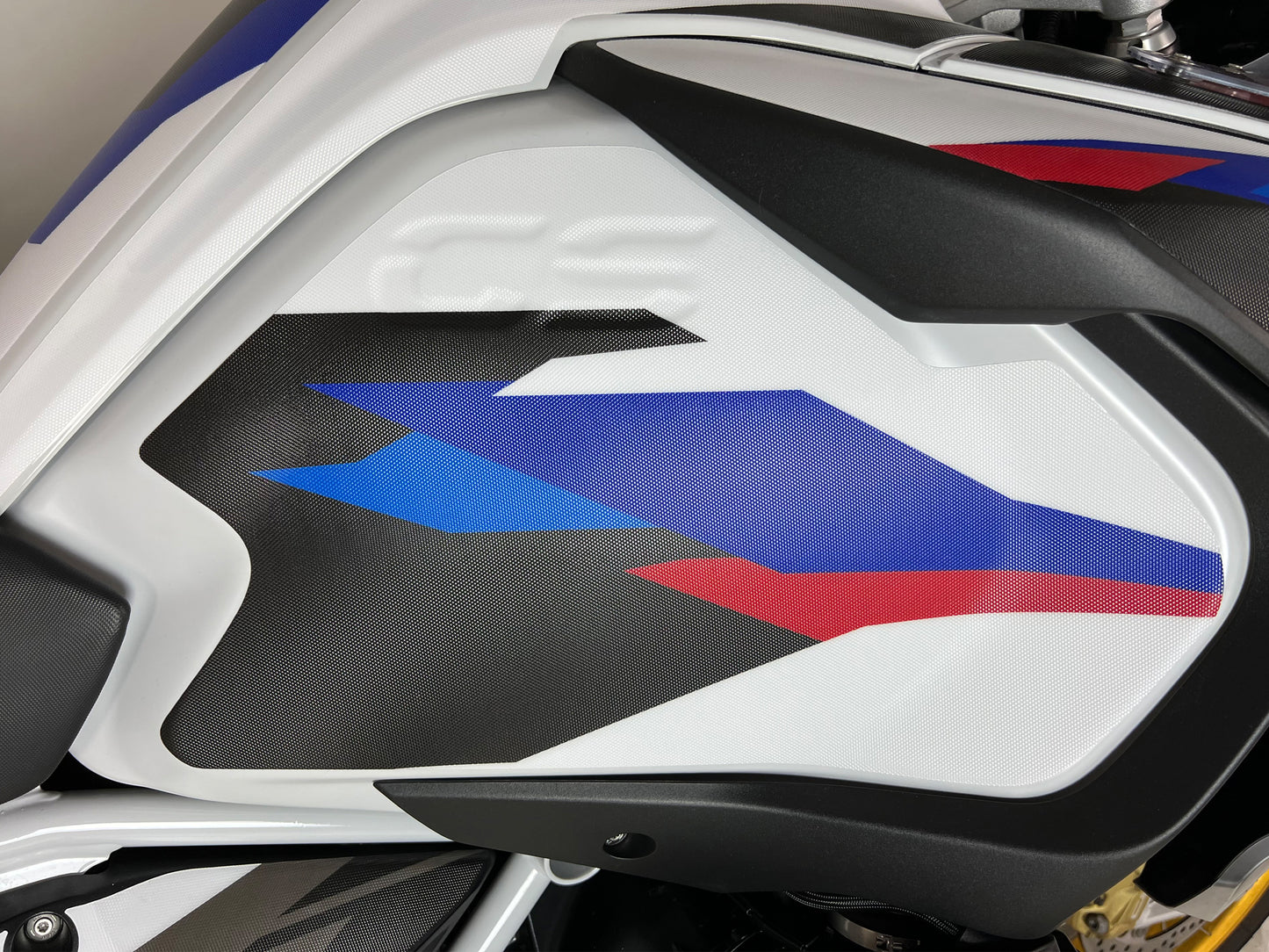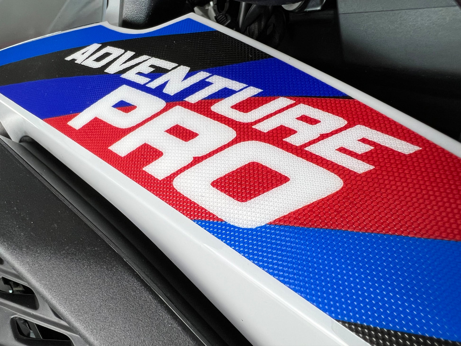 But this kit isn't just about protection; it is also a statement of style and attitude. The kit graphic combines classic white with BMW's iconic red and blue colours, creating a striking and distinctive aesthetic that fits perfectly with the unmistakable style of your bike. Additionally, the word "ADVENTURE PRO" appears proudly on the sides of the front fender, reminding you that you're ready to conquer any adventure that comes your way.