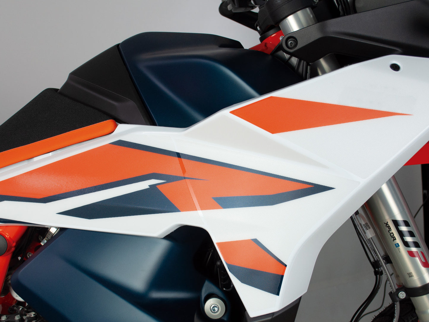 Take care of your KTM 790 or 890 Adventure R with our exclusive protective sticker kit, developed with innovative GRASTEC material. This kit has been specifically designed for the 2023 and 2024 models, providing long-lasting protection against scratches, stone chips, and UV exposure.