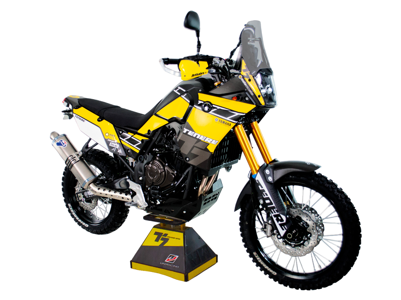 Are you looking to customize your Yamaha Tenere 700 and give it a special touch? Uniracing is the place for you. Our Yamaha Tenere 700 decals are available in racing yellow, racing white, Petronas black, and official Yamaha blue, so you can choose the one that best suits your style. Plus, our GRASTEC technology ensures the graphics are scratch-resistant and long-lasting, so you can enjoy your customization for a long time.