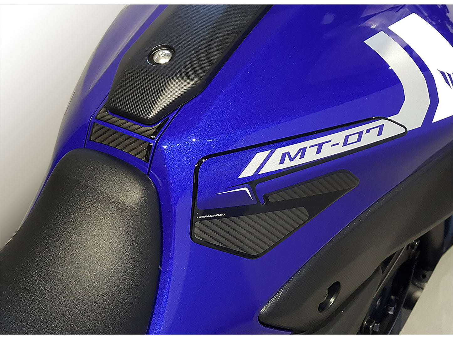 Protect and enhance the tank of your Yamaha MT 07 with our specially designed Tank Pad. This vinyl and polyurethane resin sticker combines a part that simulates carbon with a transparent part, allowing the original MT07 logo of your tank to remain visible.