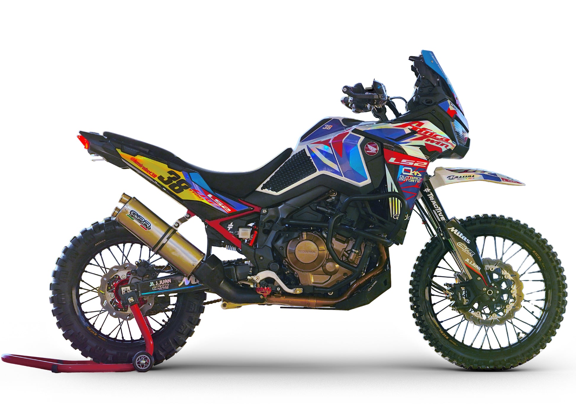 La versión exacta que lleva Kirian en sus rutas y pruebas, adaptada a una Africa Twin equipada como la suya: